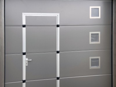 You can use the integrated wicket door any time when you need to get to the garage only to get some small items. The wicket door saves energy costs, because it enables entering without having to open the entire door. A colour identical to the garage door is a matter of course. The aluminium frame of the wicket door can be silver anodized, painted according to the RAL colour scheme or laminated with any foil. The wicket door can be fitted with a door closer, secured garage door movement with the wicket door open, panic lock and other accessories.
